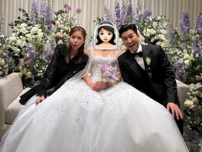 반면 김종민과 그룹 코요태로 오랜 시간 활동해 가족 같은 사이로 알려진 신지는 신부의 얼굴을 완벽히 가린 채 인증샷을 남겼다.