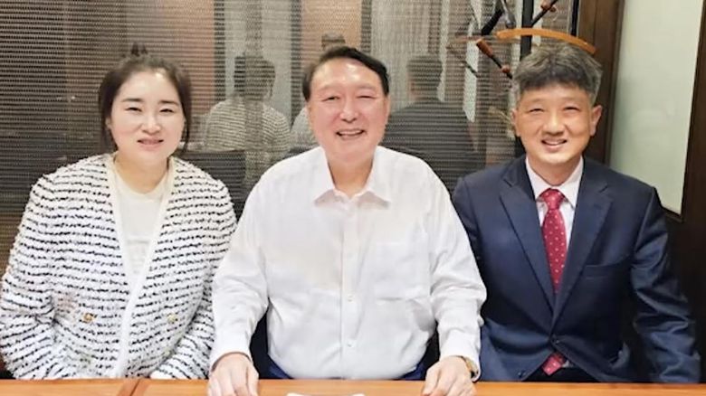역시 대리인단으로 활동했던 배의철 변호사와 함께 윤 전 대통령을 사이에 두고 환하게 웃는 모습이 담겼습니다.