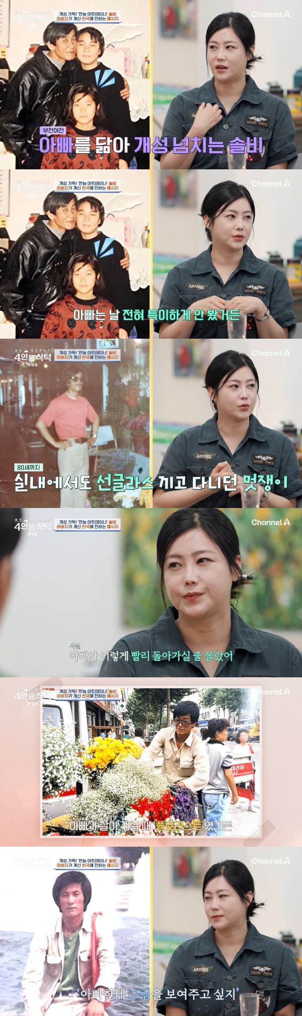 솔비는 "사실 아빠가 이렇게 빨리 돌아가실 줄 몰랐다"며 "아빠가 살아계셨을 때 플로리스트였다. 꽃가게를 하셨다"고 밝혔다. 그러면서 "만약 살아계신다면 (내가 그린 꽃) 그림을 보여주고 싶다. 못 보고 돌아가셨다"며 눈시울을 붉혔다.