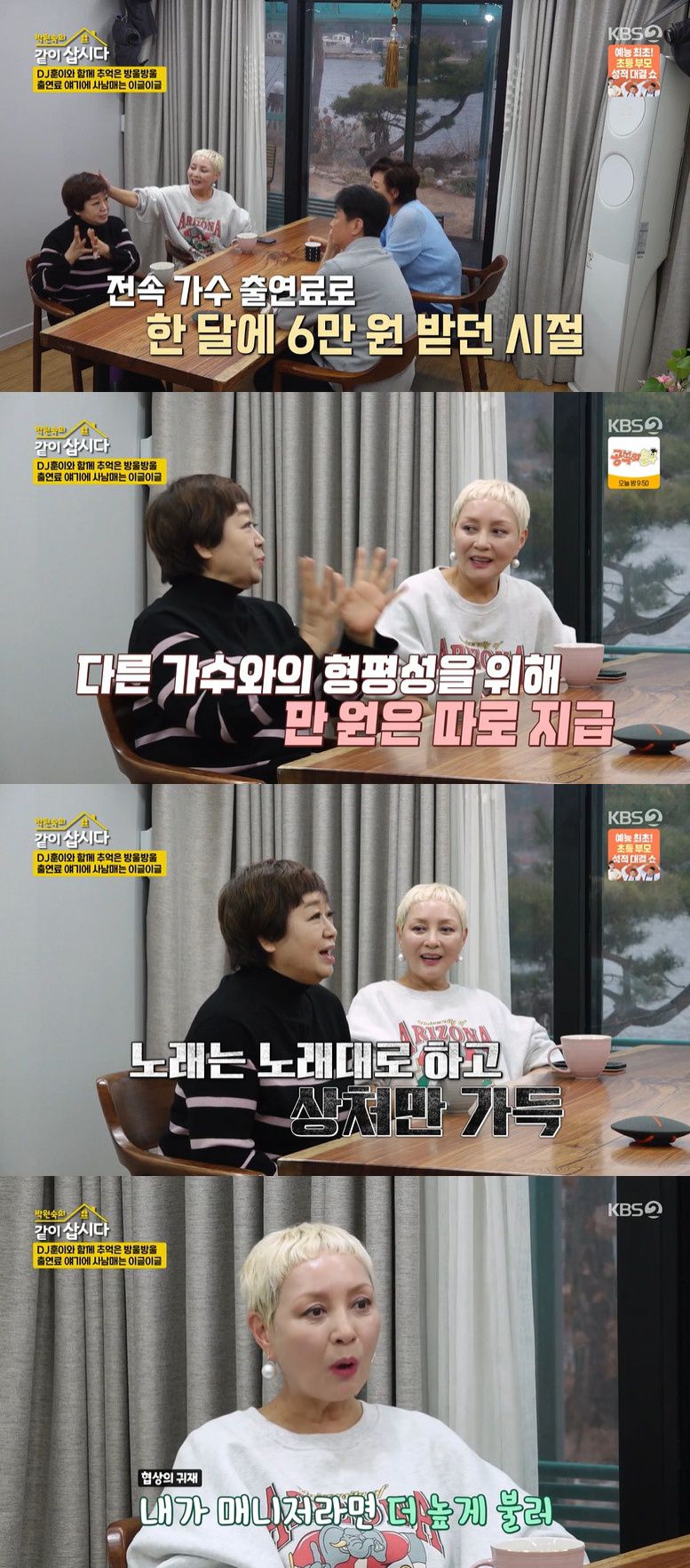 한번은 출연료가 맞지 않아 거절했더니 다른 출연자들의 출연료를 들먹이며 협상하려던 사장님들에 혜은이는 "비밀이 없었다"며 울분을 토로했고, 이에 홍진희가 "내가 매니저면 더 불렀다"고 하자 박원숙은 "그러면 너 안 쓴다"고 당시 현실을 전했다.
