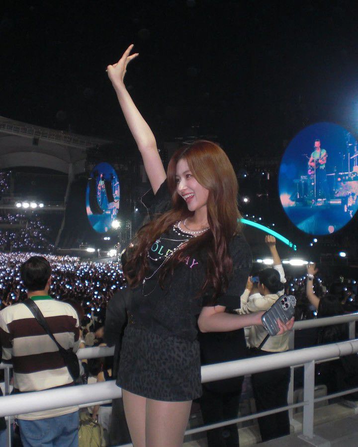 21일 사나는 자신의 SNS에 콜드플레이 공연에서 찍은 사진을 게재했다.
