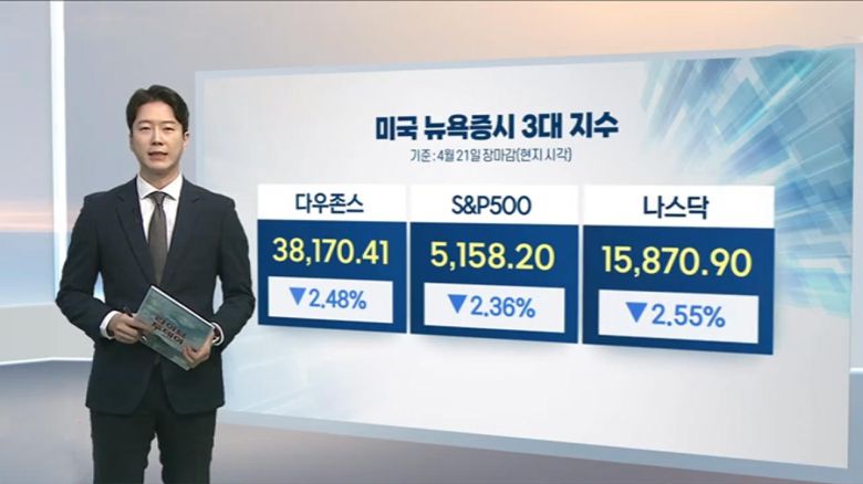다우존스30산업평균지수는 전장보다 2.48% 급락한 채 장을 마감했고요. S&P 500지수는 전장보다 2.36%, 나스닥 종합지수도 2.55% 밀린 채 거래를 마쳤습니다.