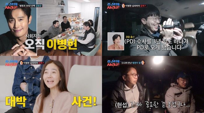 그러던 심현섭은 ‘특급 첩보’를 입수, 이병헌의 촬영장으로 직접 찾아가는 승부수를 띄웠다. 제작진은 “친하다고 하셨는데...범인 잡듯이 하신다. 마침 신입 PD가 경찰하다 왔다”며 ‘잠복’을 선언했다. 김국진은 “경찰 출신 PD면 잠복에 도가 텄을 것”이라며 기대감에 부풀었다. 차까지 바꿔가며 잠복하는 모습에 최성국은 “진짜 ‘형사 25시’ 보는 것 같다. 나도 긴장된다”고 몰입했다.