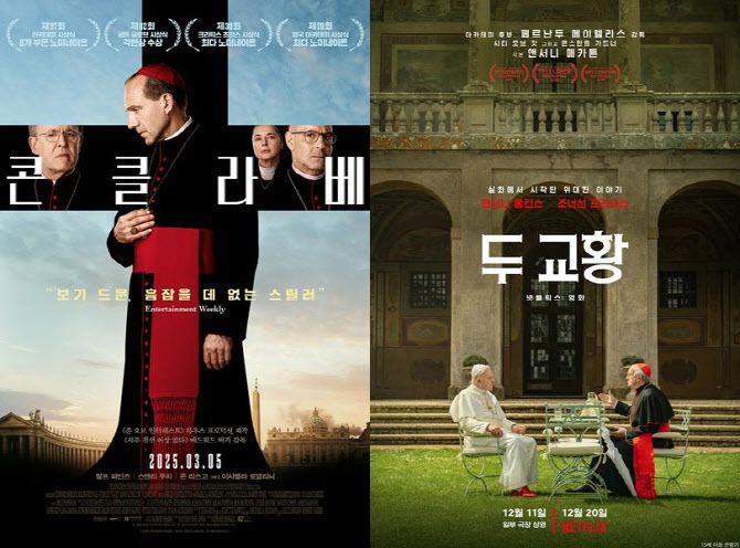 에드워드 버거 감독이 연출한 ‘콘클라베’의 시놉시스와 줄거리도 현실의 상황과 비슷하다. 모두의 존경을 한몸에 받던 교황이 선종하면서 140명의 추기경들이 새로운 교황 후보로 교황청에 모여 감금된 채로 새로운 교황을 위한 투표를 실시한다. 최다득표가 일정 정족수에 달하지 않으면 투표룰 다시 진행한다. 그렇게 정족수를 충족한 최다 득표로 새 교황이 선출될 때까지 후보들은 감금된 채로 무한 투표를 실시한다. 이 영화는 세간에 잘 알려져 있지 않던 교황 선출 과정을 자세히 다뤄 영화계의 주목을 받았다. 특히 신성한 종교 조직에도 예외없는 파벌의 존재, 파벌 간 정치 다툼과 음모, 배신 등을 세밀히 그려 스릴러로서 높은 완성도를 보였다는 극찬을 받고 있다. 동명 소설이 원작으로, 올해 열린 제97회 미국 아카데미 시상식을 비롯한 해외 유수 영화제, 시상식 후보로 이름을 올려 트로피 레이스를 펼쳤다.