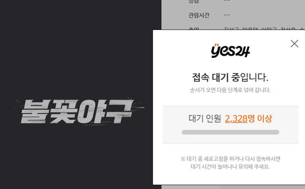 '불꽃야구' 티켓팅 오픈과 동시에 접속자가 몰리고 있다.