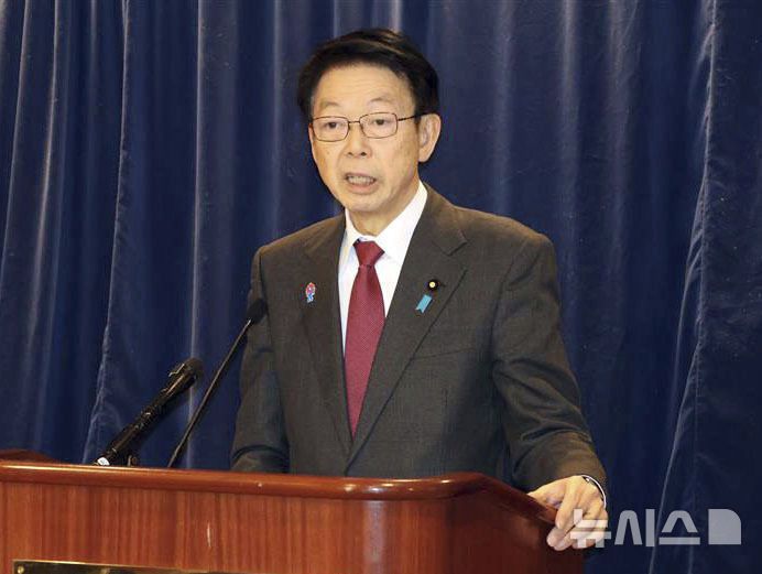 [워싱턴DC=AP·교도/뉴시스] 무토 요지 일본 경제산업상은 22일 미일 관세 협상에서 일본의 전기차(EV) 고속 충전기 독자 규격 '차데모'도 미일 관세 협상 의제 중 하나가 될 것이라고 밝혔다. 사진은 지난달 10일 미국 워싱턴DC를 방문해 기자회견을 하는 모습. 2025.04.22.