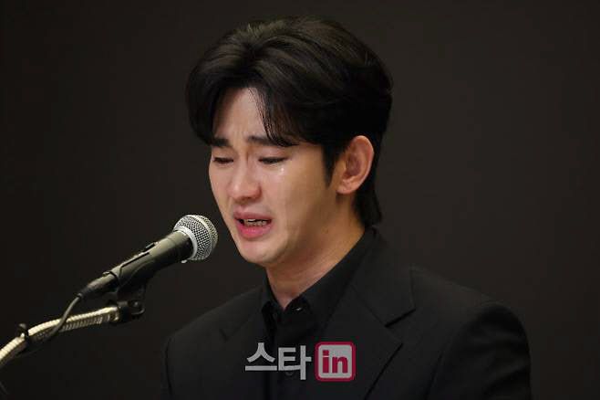 이같은 연이은 폭로에 김수현은 긴급 기자회견을 열고 고 김새론과 열애를 부인했던 것은 tvN ‘눈물의 여왕’을 지키기 위해서였다며 “스타 김수현으로서의 선택을 했다”고 털어놨다. 또한 현재 가세연을 통해 공개된 고 김새론의 유족 자료가 조작된 것이라며 “고인이라면 저와 나이차이를 틀릴 수 없다”고 오열했다. 이 같은 자료를 수사기관에 제출했다고도 덧붙였다.