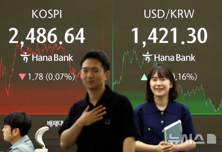 이날 코스피는 전 거래일(2488.42)보다 1.78포인트(0.07%) 하락한 2486.64에 장을 마쳤고 서울 외환시장에서 원·달러 환율은 전 거래일 주간거래 종가(1419.1원)보다 1.5원 오른 1420.6원에 주간 거래를 마감했다. 2025.04.22. park7691@newsis.com