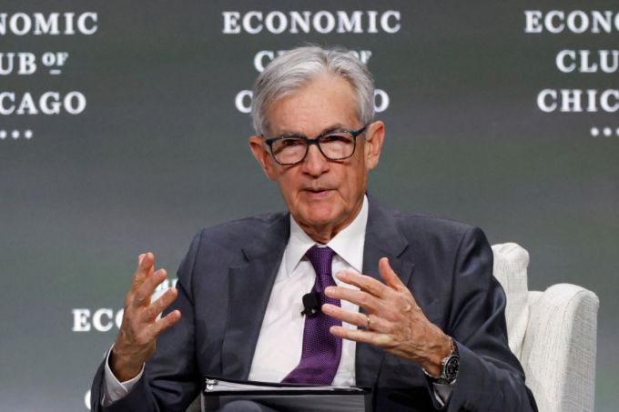 (시카고 AFP=뉴스1) = 제롬 파월 미국 연방준비제도(연준) 의장이 16일(현지시간) 일리노이주 시카고의 시카고 경제클럽에 참석해 가진 연설서 “도널드 트럼프 행정부의 예상보다 높은 관세로 물가 인상과 성장 둔화가 예상된다”고 밝히고 있다. 2025.04.17  /AFPBBNews=뉴스1