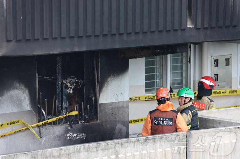 22일 소방 등 관계자들이 지난 21일 화재가 발생한 서울 관악구 봉천동의 한 아파트에서 합동감식을 하고 있다. 2025.4.22/뉴스1 ⓒ News1 김도우 기자 |