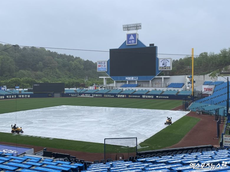 이날 대구엔 아침부터 계속해서 비가 내렸다. 장대비는 아니었지만 약한 비가 제법 많이 쏟아졌다. 라이온즈파크 내야에 대형 방수포를 깔아둔 뒤 날씨를 살폈지만 비는 그칠 기미를 보이지 않았다. 오히려 빗줄기가 점점 굵어졌다. 더욱이 대구에 늦은 저녁까지 비 소식이 예고돼 있는 상태였다. 결국 두 팀의 주중 3연전 첫 경기는 열리지 못하게 됐다.