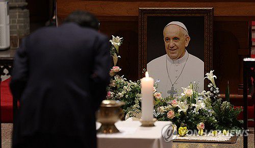 (인천=연합뉴스) 황정환 기자 = 천주교 인천교구는 지난 21일 선종한 프란치스코 교황을 추모하기 위해 답동 주교좌성당에 분향소를 마련한다고 22일 밝혔다.