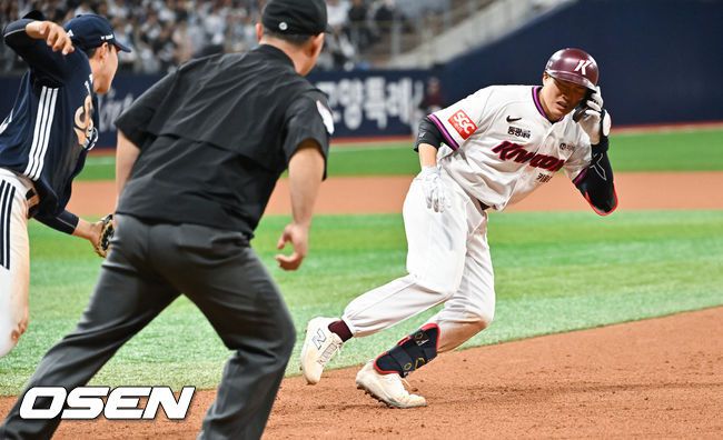 6회말 2사 2루 키움 오선진의 안타를 날린뒤 런다운 걸리고 있다. 그 사이 2루 주자 임지열이 홈쇄도해 득점 올렸다.. 2025.04.22 / soul1014@osen.co.kr
