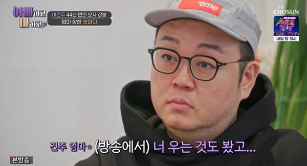 이날 이건주는 "웃으면서 엄마 보러 오자 생각했는데 막상 집 앞에 오니까 눈물이 나더라. 이렇게 만나게 될 것이라 생각도 못했다"고 말했다.