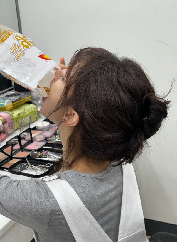 또한, 분장실에서 간식을 먹으며 꾸밈없는 모습을 보이거나, 초록색 이색 선글라스를 착용하고 장난기 가득한 포즈를 취하는 등 다채로운 표정과 행동으로 촬영장의 유쾌한 분위기를 전한다.