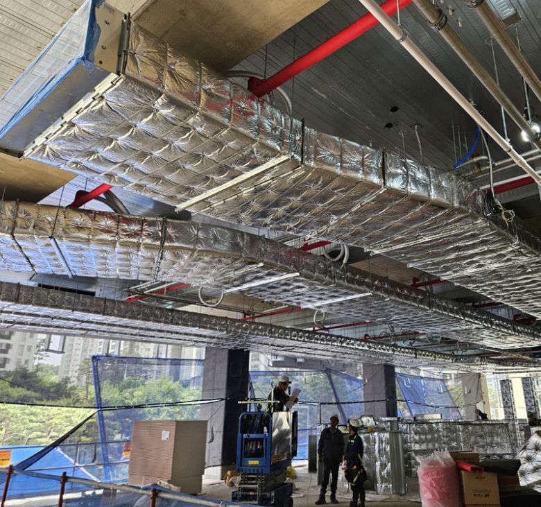 공사 현장에서 KCC 설비 배관 보온재를 시공하고 있는 모습. KCC 제공