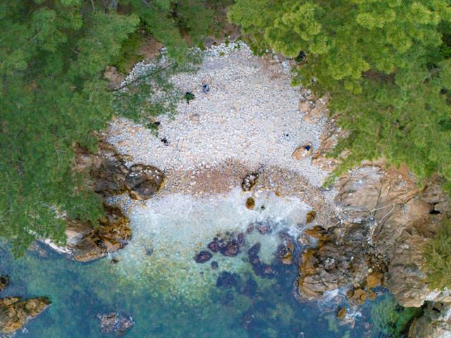 강원 동해시 몽돌해변은 주위의 숲에 가려져 있다.강원 동해시 몽돌해변은 주위의 숲에 가려져 있다.