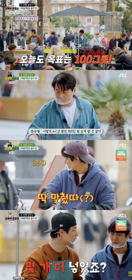 이날 류수영은 스페인 현지 입맛에 맞춘 해물떡찜과 꿀치킨을 만들어 두 번째 장사를 시작했다. 한차례 손님들이 떠나고 게와 치킨 소스도 부족한 상황에 처하고 말았다. 류수영은 당황하지 않고 식재료 차고 탐색하더니 “(게) 없으면 새우 더 주면 된다”라며 게의 빈자리를 채워 새우를 가득 담고, 지체 없이 꿀 소스를 제작해 소스 리필까지 마쳤다.