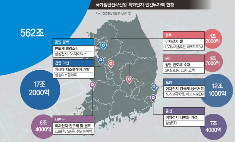 하지만 한국에선 국가가 적극적으로 개입하는 산업정책에 대해서 특별한 거부감이 없다. 1973년 시작한 중화학공업화의 유산이 있기 때문이다. 정부는 6대 산업을 지정하고(조선, 자동차, 석유화학, 기계, 방산, 전자) 제조업에 도전해 보겠다는 업체를 선정하고 입지를 정했다. 전국의 시도가 경합했고, 포항·울산·창원·거제를 지나 여수까지 가로지르는 남동임해공업지구가 입지로 선정됐다.
