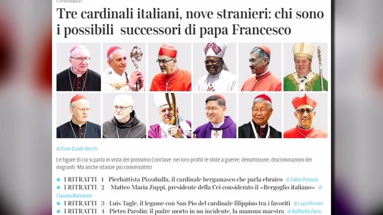 현지 시간 22일, 이탈리아 최대 일간지 코리에레 델라 세라가 꼽은 차기 교황 후보들입니다.