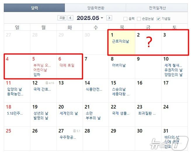 (서울=뉴스1) 신초롱 기자 = 내달 초 연휴를 앞두고 5월 2일을 임시공휴일로 지정할지에 뜨거운 관심이 쏟아지고 있다.