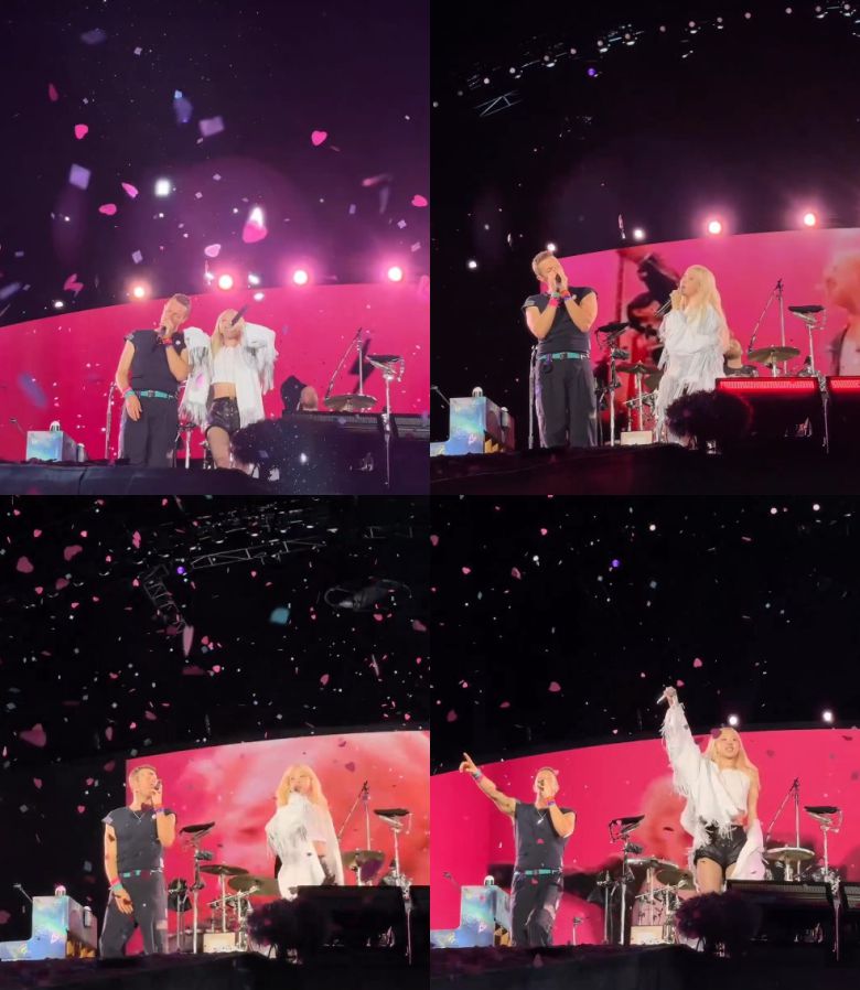 그룹 블랙핑크 로제가 밴드 콜드플레이의 내한 공연 무대에 등장했다.