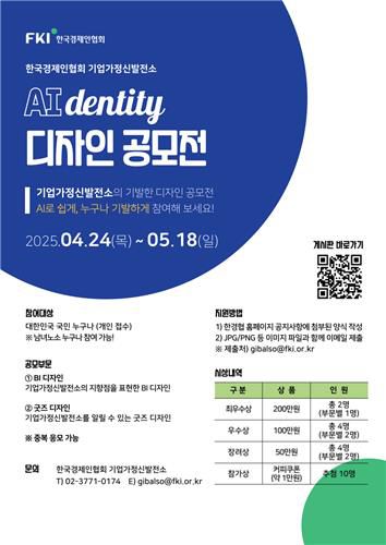 ▲ 한국경제인협회(한경협) 기업가정신발전소는 브랜드 정체성 구축을 위한 '기업가정신발전소 AIdentity 디자인 공모전' 접수를 오는 24일부터 다음 달 18일까지 진행한다고 23일 밝혔다. 공모 분야는 '브랜드 아이덴티티(BI) 디자인'과 '기발한 굿즈 디자인'이며 총상금 규모는 1천만원이다. 한경협은 이번 공모전을 통해 선정된 BI와 굿즈를 기업가정신 관련 프로그램과 홍보 콘텐츠에 적극 활용할 예정이다. (서울=연합뉴스)