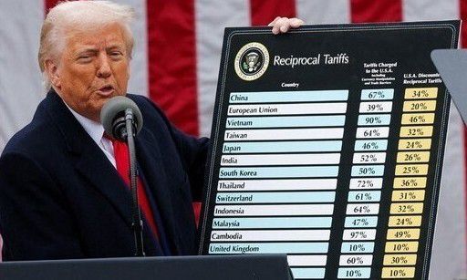 도널드 트럼프 미국 대통령이 2일(현지시각) 상호관세에 관해 설명하고 있다. 로이터 연합뉴스