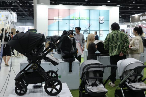 지난달 27일 서울 강서구 마곡동 코엑스 마곡에서 열린 ‘2025 마이비 마곡 베이비페어&유아교육전’에서 방문객들이 육아용품을 살펴보고 있다. (사진=연합뉴스)