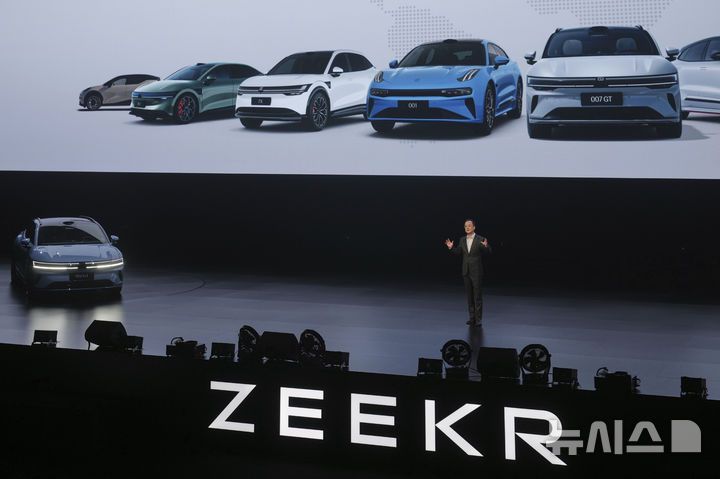 [상하이=AP/뉴시스] 지난 15일 중국 저장성 항저우에서 전기차 브랜드 지커의 신모델을 공개하고 있다. 2025.04.23 |