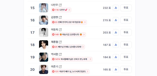 확장된 머더헬프와 바빌론의 대결 구도 속에서 이동욱이 어떤 변화를 보여줄지 귀추가 주목되는 가운데, 23일 오전 11시 58분 기준 디시트렌드(dctrend) '1초 보고 입덕 → 무한 회전 직캠 각 배우! 팬들이 선택한 1위는?' 일간 투표에서 이동욱은 203표를 얻으며 17위를 기록, 여전히 뜨거운 팬심을 실감케 했다.