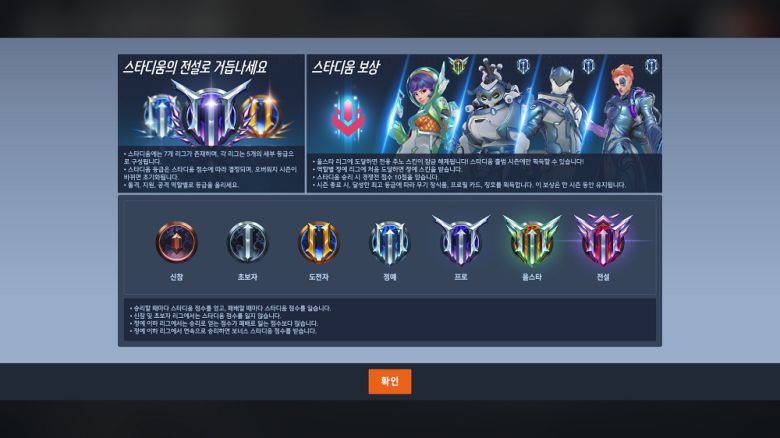 스타디움은 등급제 모드로, 스타디움 출범 시즌 보상이 존재한다