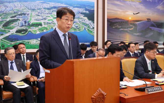 박상우 국토교통부 장관이 23일 서울 여의도 국회에서 열린 국토교통위원회 전체회의에서 25년도 추가경정예산안 제안설명과 신안산선 터널 붕괴 사고 및 인천국제공항공사 제2터미널 확장공사 대금 지급과 관련해 현안 보고를 하고 있다.(사진=연합뉴스) |