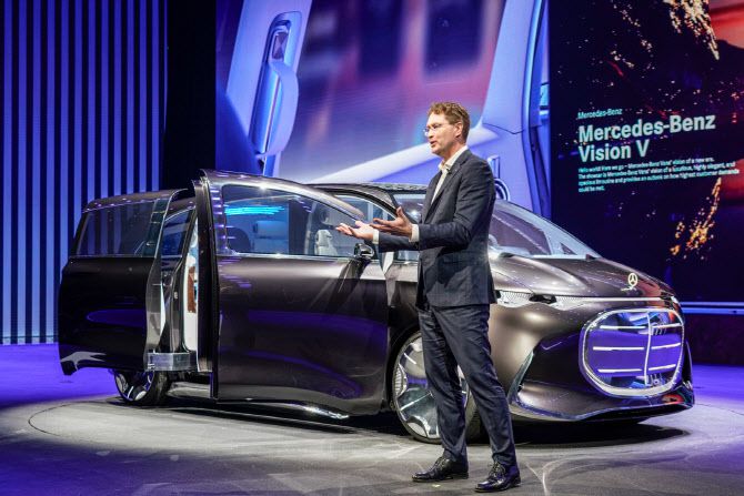 올라 칼레니우스 메르세데스-벤츠 그룹 CEO가 비전(Vision) V를 소개하고 있다. (사진=한국자동차기자협회) |