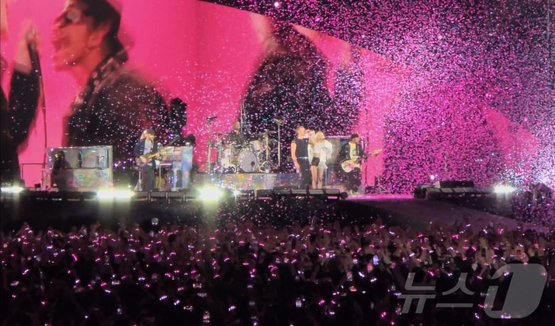 이날 공연에는 그룹 블랙핑크 로제가 참석했다. 로제는 공연 말미 무대에 올라 세계적 히트곡 '아파트'(APT.)를 밴드 리더이자 프론트맨 크리스 마틴과 함께 불렀다.