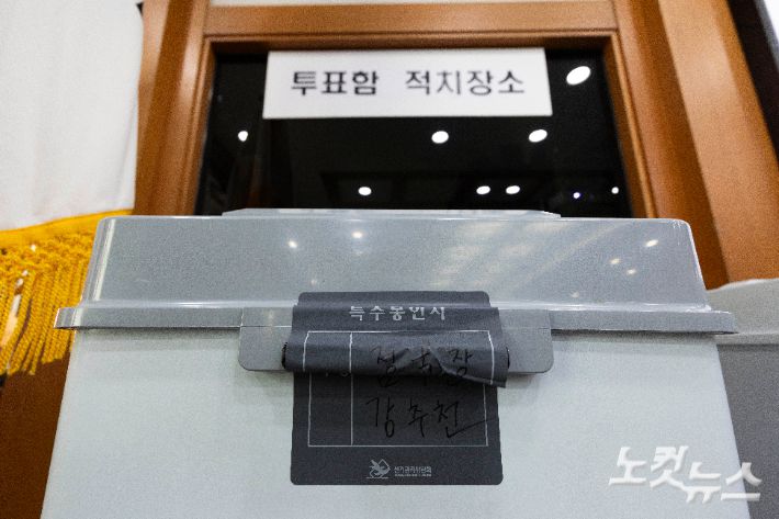 10일 오후 경기도 과천시 중앙선거관리위원회에서 열린 제21대 대통령 선거 투·개표 절차 시연회에 투표함이 투표함 적치장소에 놓여 있다. 과천=황진환 기자