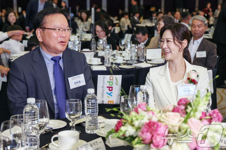 (서울=뉴스1) 민경석 기자 = 이수경 대한빙상경기연맹 회장(오른쪽)과 김부겸 전 총리가 23일 서울 중구 웨스틴조선 호텔에서 열린 '제34대 대한빙상경기연맹 회장 취임식'에서 대화를 나누고 있다. 지난 2월부터 임기를 시작한 이수경 회장은 피겨스케이팅 선수 출신으로, 국제빙상연맹(ISU) 데이터 오퍼레이터와 피겨 국제심판, 대한빙상경기연맹 이사 등으로 활동해왔다. 2025.4.23/뉴스1