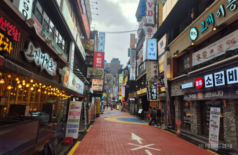 2026년도 최저임금을 결정하기 위한 최저임금위원회의 심의가 시작된 지난 22일 오후 서울 종로구에 있는 한 먹자골목 전경. 김도윤 기자.