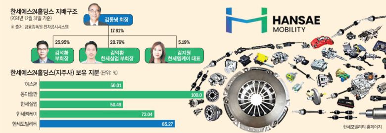 김 대표와 함께 그의 형인 김석환 한세예스24홀딩스 부회장 등도 기업설명회에 참석, 신규 CI(Corporate Identity)와 사업 현황, 제품 포트폴리오, 성장 전략 등을 발표했다. 한세모빌리티는 한세예스24홀딩스가 작년 11월 인수 후 같은 해 12월 계열 편입한 대구 기반의 자동차 부품업체로, 전신은 이래AMS다.
