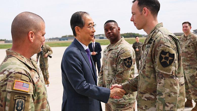 한덕수 권한대행이 평택 한미연합사령부를 방문해 장병들을 만났습니다.