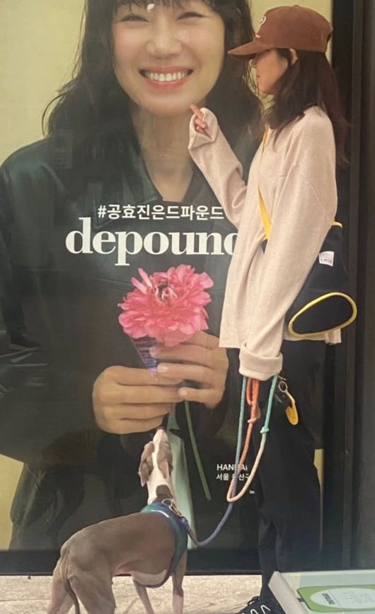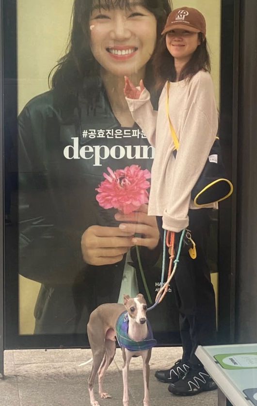 23일 공효진은 자신의 소셜 계정에 2장의 사진을 공개했다. 반려견과 함께 서울 시가지로 나선 그는 편안한 복장을 한 채 화장기 없는 얼굴로 무구한 미소를 짓고 있었다.