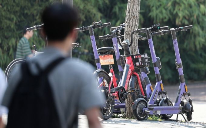 서울 시내에 세워져 있는 개인형이동장치 모습 /사진=뉴스1 |