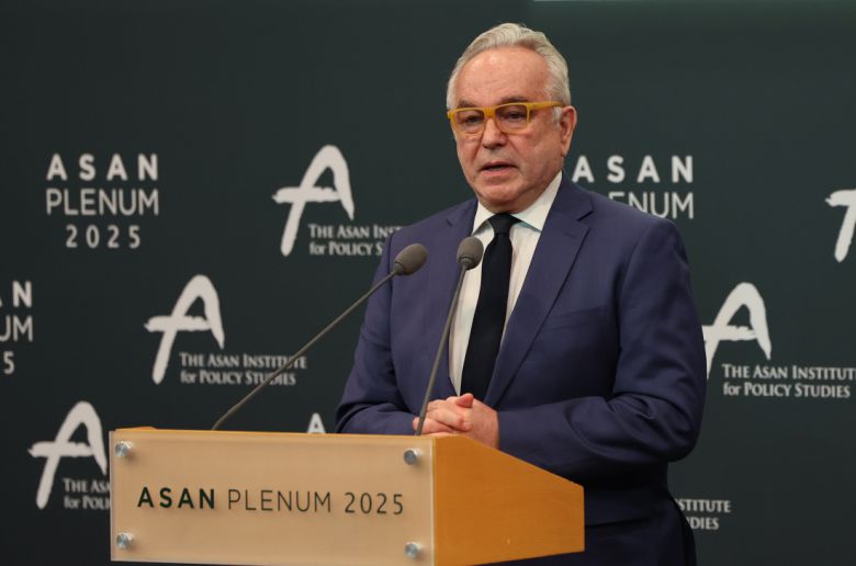 커트 캠벨 전 미국 국무부 부장관이 23일 그랜드 하얏트 서울에서 아산정책연구원 주최로 열린 ‘아산플래넘 2025’에서 기조연설을 하고 있다. 연합뉴스