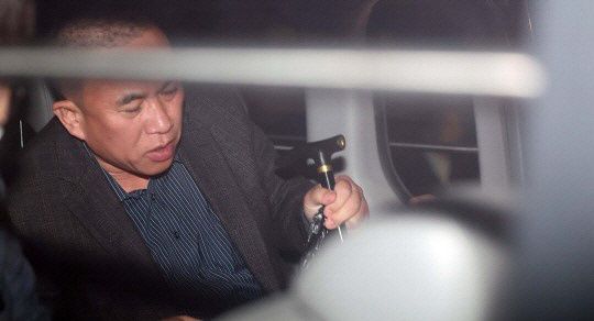 호송차에 탑승한 ‘정치 브로커’ 명태균 씨. [연합] |
