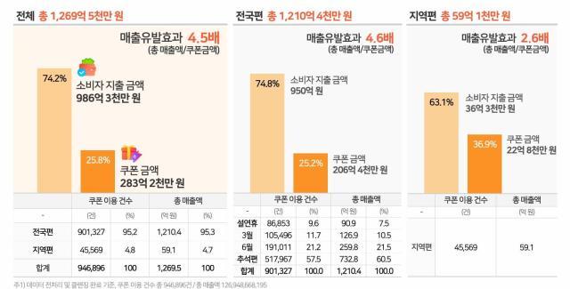 쿠폰 실 소진 결과 94만6896장이 사용됐으며, 240만명의 지역관광객 유발 효과를 기록했다. 쿠폰을 활용한 숙박경비 지출규모는 1363억원이었으며, 여행경비 지출 규모는 4364억원에 달한 것으로 조사됐다.