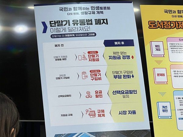 정부가 22일 서울 종로구 정부서울청사에서 국민과 함께하는 민생토론회(생활규제 개혁) 사후 브리핑에서 단말기 유통법 폐지를 발표했다. 뉴시스