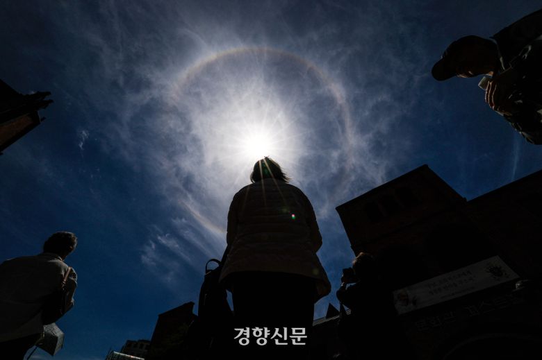프란치스코 교황의 선종 이후 서울 명동대성당에 공식 분향소가 설치된 가운데, 23일 대성당 위로 원형의 무지개인 햇무리가 떴다. 햇무리는 태양 주변으로 동그랗게 무지개가 나타나는 자연현상으로, 이날 하늘 위에 선명히 떠 오르며 조문객들의 눈길을 끌었다.