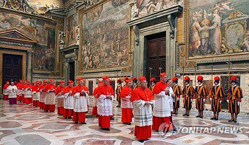2005년 4월 바티칸에서 콘클라베 의식이 시작되는 모습[Osservatore Romano/AP 연합뉴스 자료사진. 재판매 및 DB 금지]
