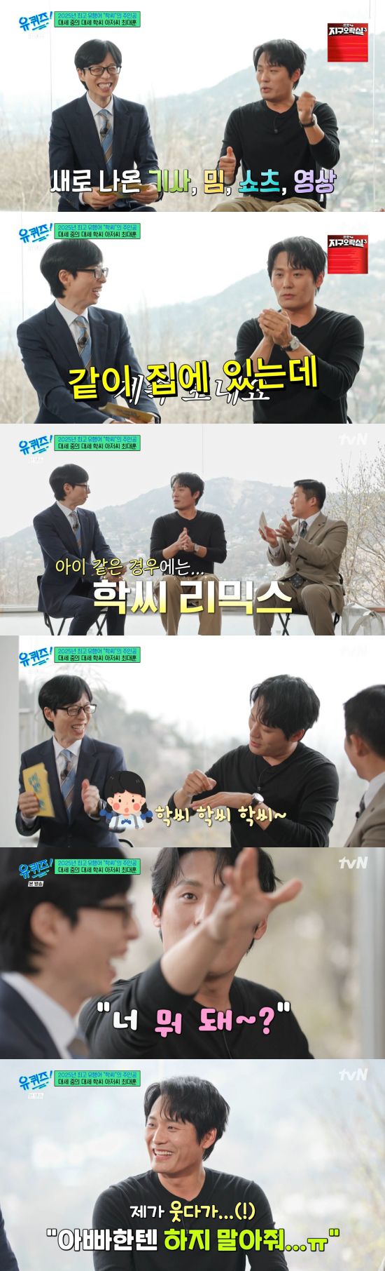 최대훈은 "아이 같은 경우에는 최근에 누가 리믹스를 만들어 줬다. 너무 감사드리고 센스가 대단하신 거 같다. 저희 딸이 숙제할 때 열 살인데 자꾸 숙제하다 그걸 부른다. '학씨, 학씨, 학씨' 하다가 제가 쳐다보면 '너 뭐 돼?' 이러면서. 제가 웃다가 '근데 아빠한테는 하지 말아 줘' 한다"라며 전했다.