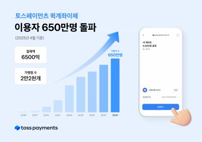 토스페이먼츠는 간편 계좌이체 서비스 '퀵계좌이체' 누적 이용자 수가 출시 2년 만에 650만 명을 돌파했다고 24일 밝혔다.